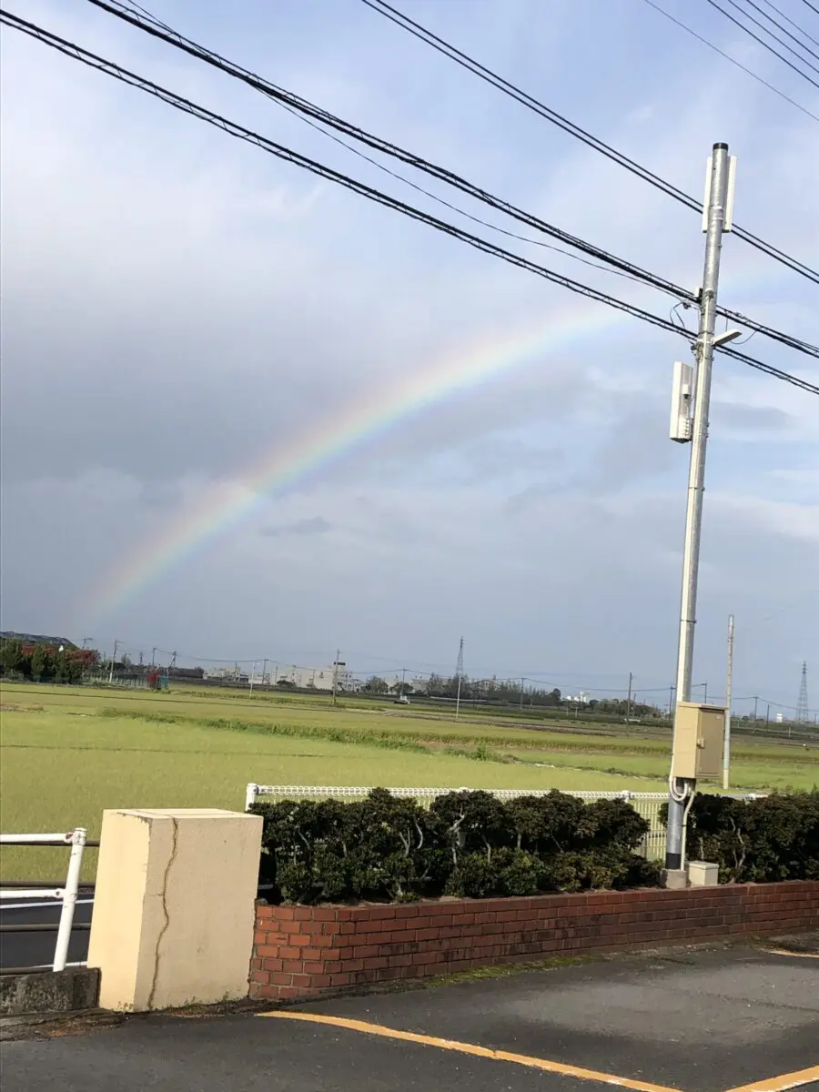 少し前の写真ですが、職場の駐車場からキレイな虹🌈が見えました☆ 虹を見るといくつになってもとても得した気分になります♪♪ ちなみに虹は「大気中に浮遊する水滴の中を光が通過する際に、 分散することで特徴的な模様が見られる大気光学現象」 だそうです。 その日は写真も撮れてとてもいい一日でした(*'ω'*)