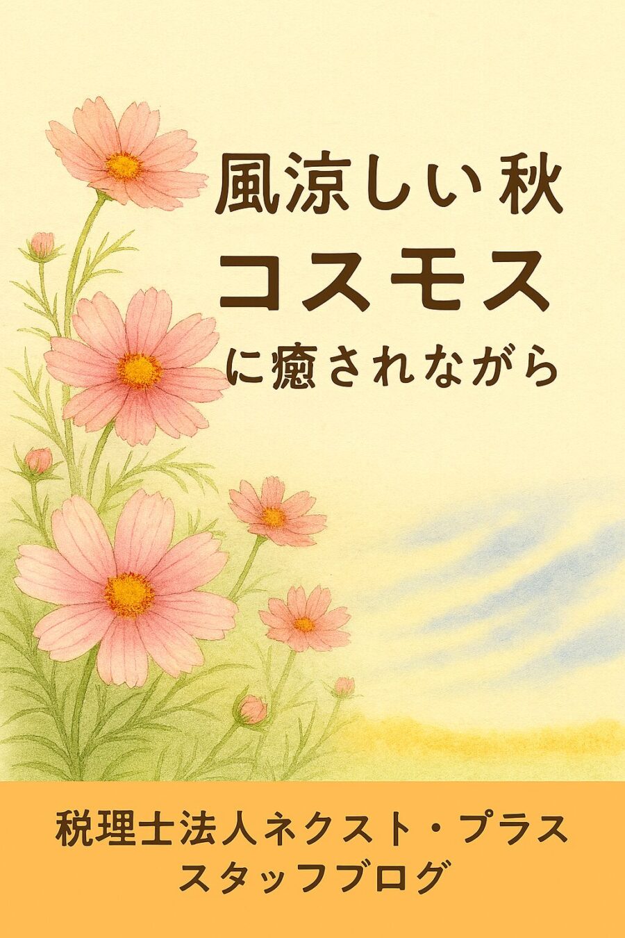 事務所の近くでも、ピンクや白のコスモスが風に揺れていて、なんとも可愛らしい姿ですね。
